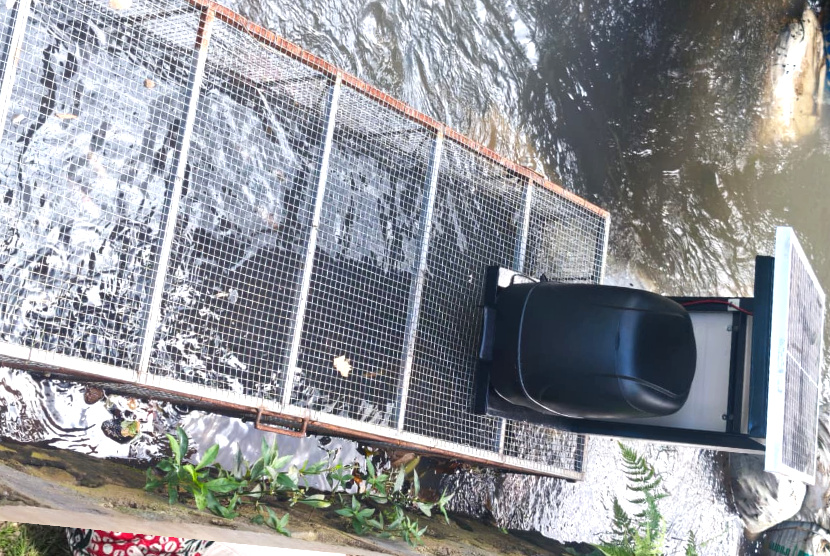 Para peserta dari Santri Fish Farm antusias mengikuti praktik langsung di kolam budidaya dan memahami cara penggunaan alat berbasis panel surya tersebut.